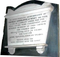Headstone of Thomas and Anna. Inscription on left reads: "In Memory of Thos Goodliffe of Lamley Lodge