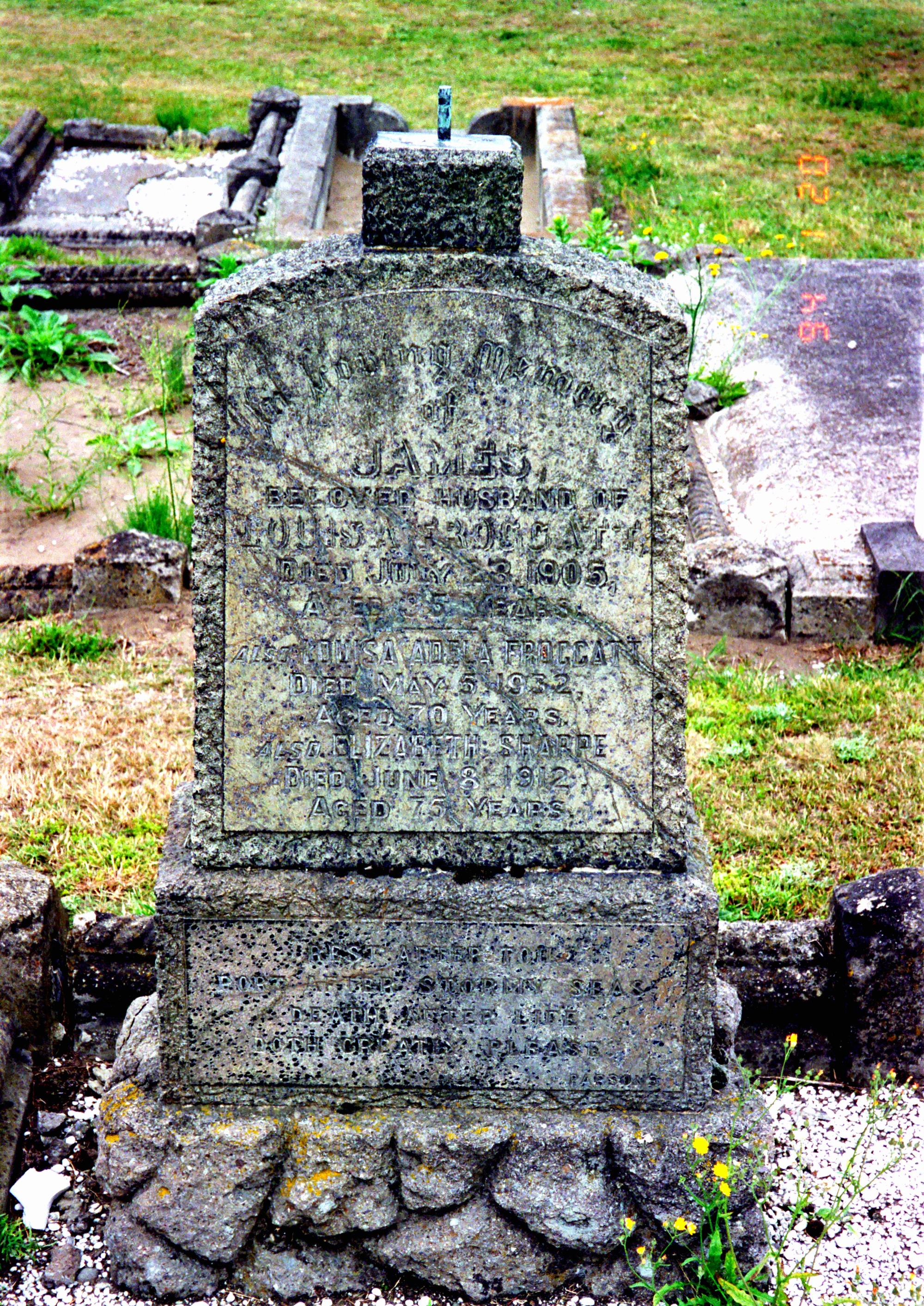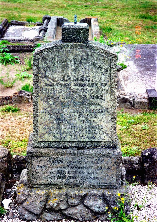 After James died, his widow Louisa remained at 125 North Belt Christchurch. The address was later renamed to 210 Bealey Ave. Louisa's mother Elizabeth SHARPE died there on 8 June 1913. Louisa died at St George's Hospital on 5 May 1932 of heart failure.