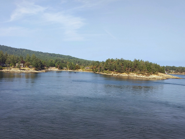a narrow channel between Galliano and Mayne Islands before winding its way to the other terminal at Swartz Bay. We reboared the bus, waited for the front to open then headed south to