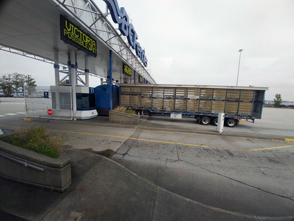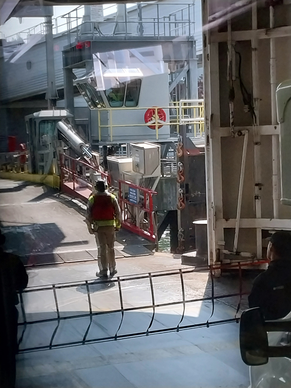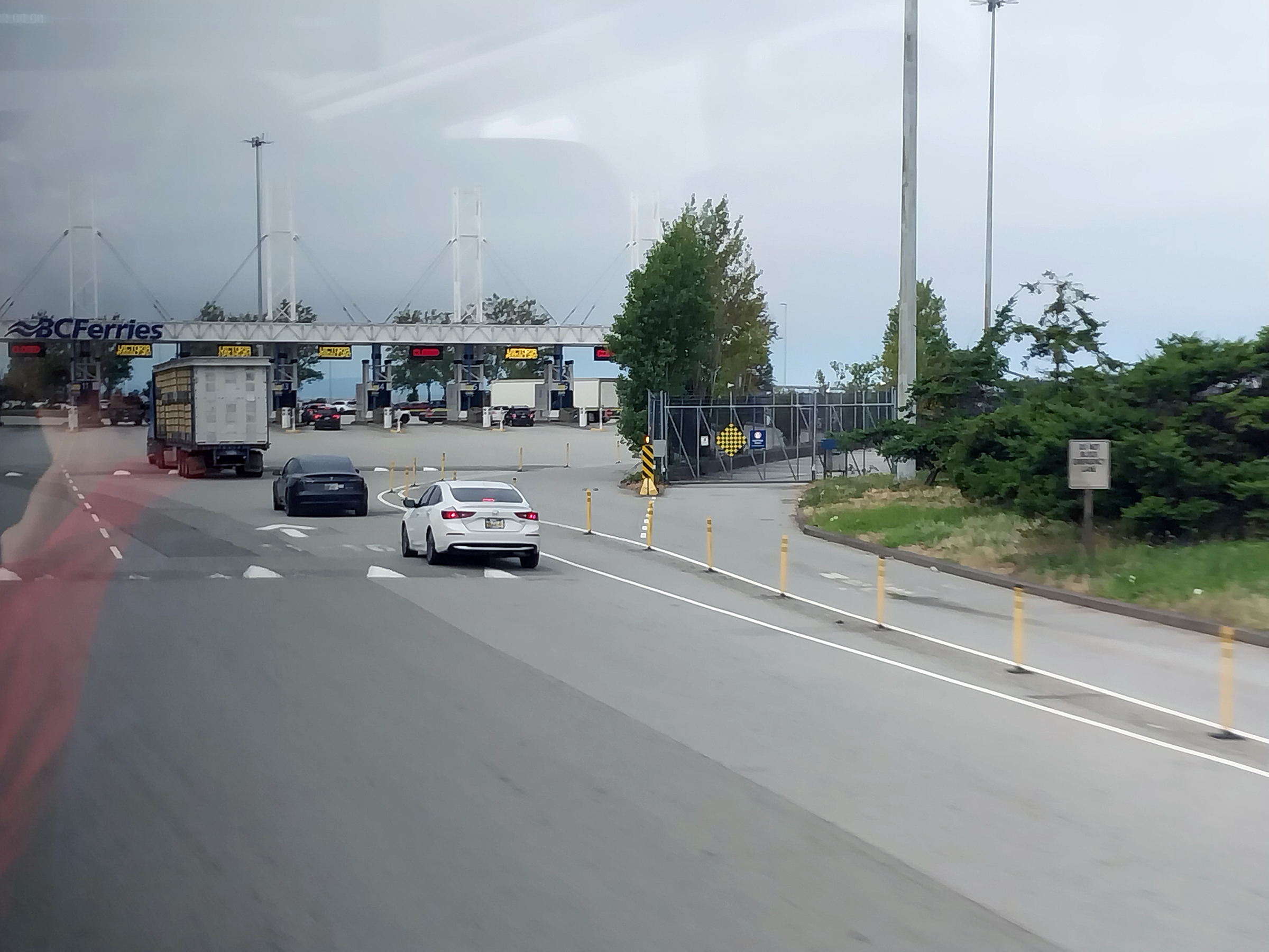 Approaching the ferry pay booths. |
