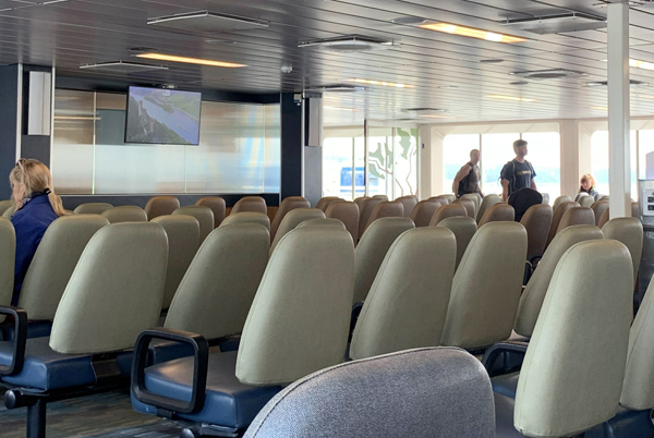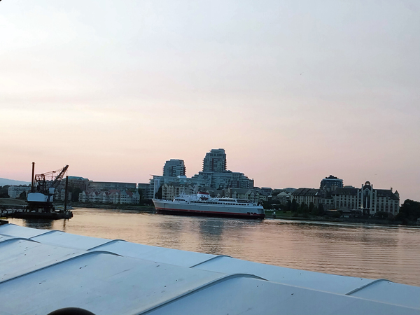 centre of Vancouver. Travellers from local hotels had already been picked up, but we stopped at several locations on the way out for more guests. At the ferry we loaded more
