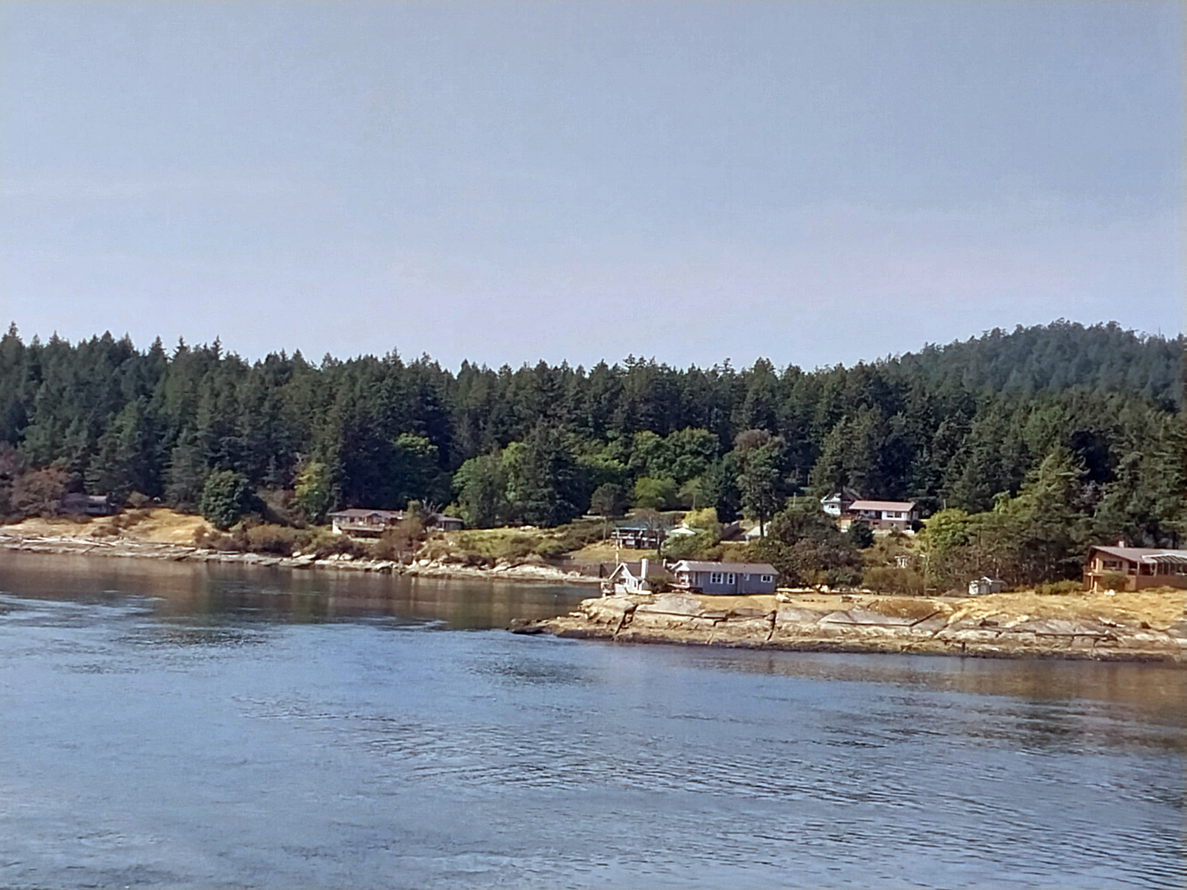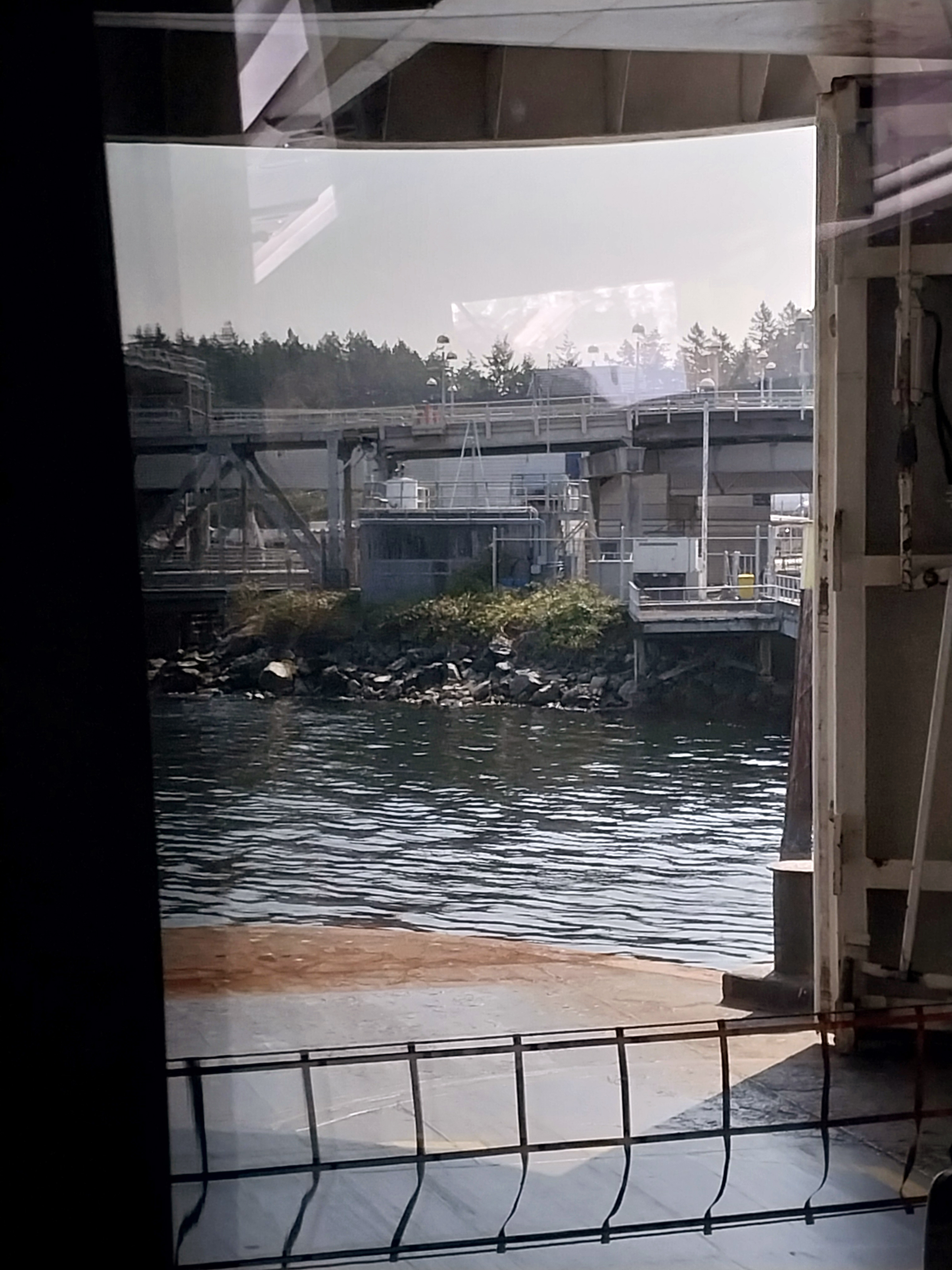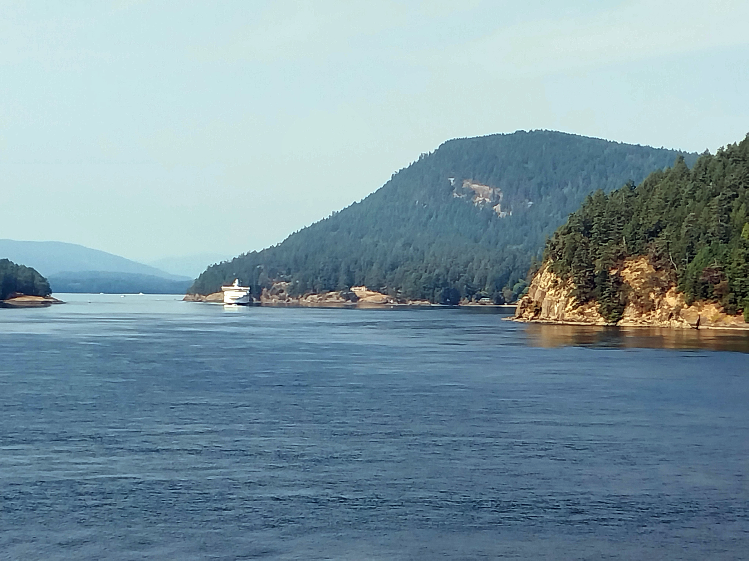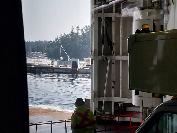a narrow channel between Galliano and Mayne Islands before winding its way to the other terminal at Swartz Bay. We reboared the bus, waited for the front to open then headed south to
