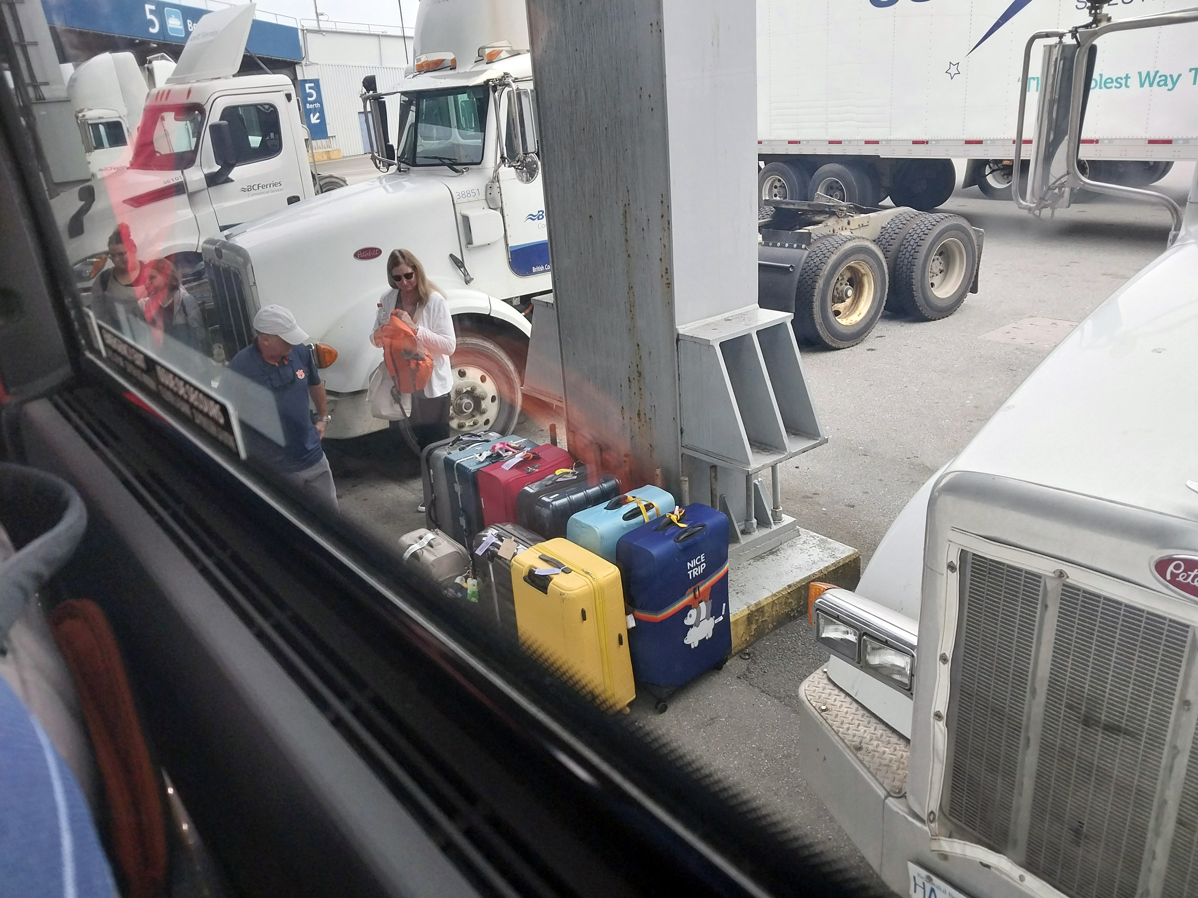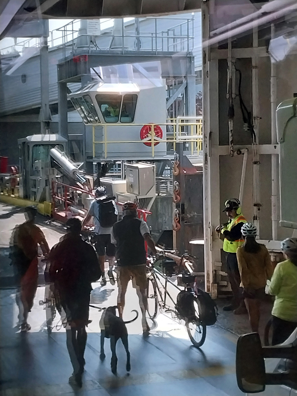 bags (but no prople) then drove onto the ferry, at the head of the queue.