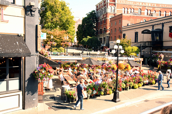 the provincial capital of Victoria. The town of Victoria is the oldest English settlement in Canada. The coach ended its travels behind the Fairmont Empress Hotel, a large,