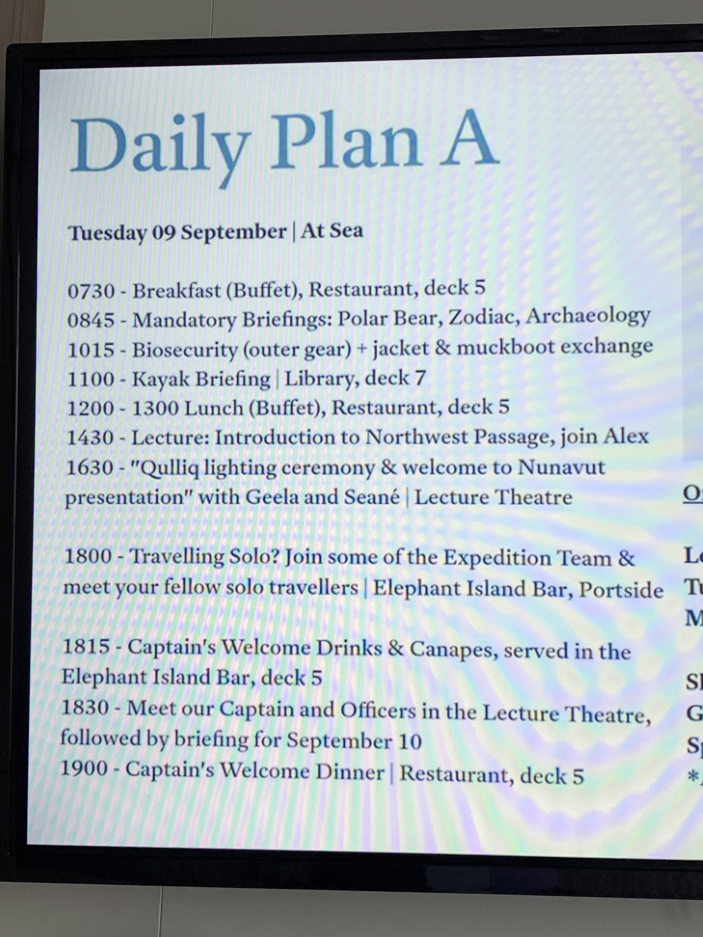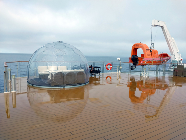 dirt to avoid any contamination of isolated Arctic locations. That done there was time for a quick tour of the deck (in the rain) before we moved on to the Inuit lighting